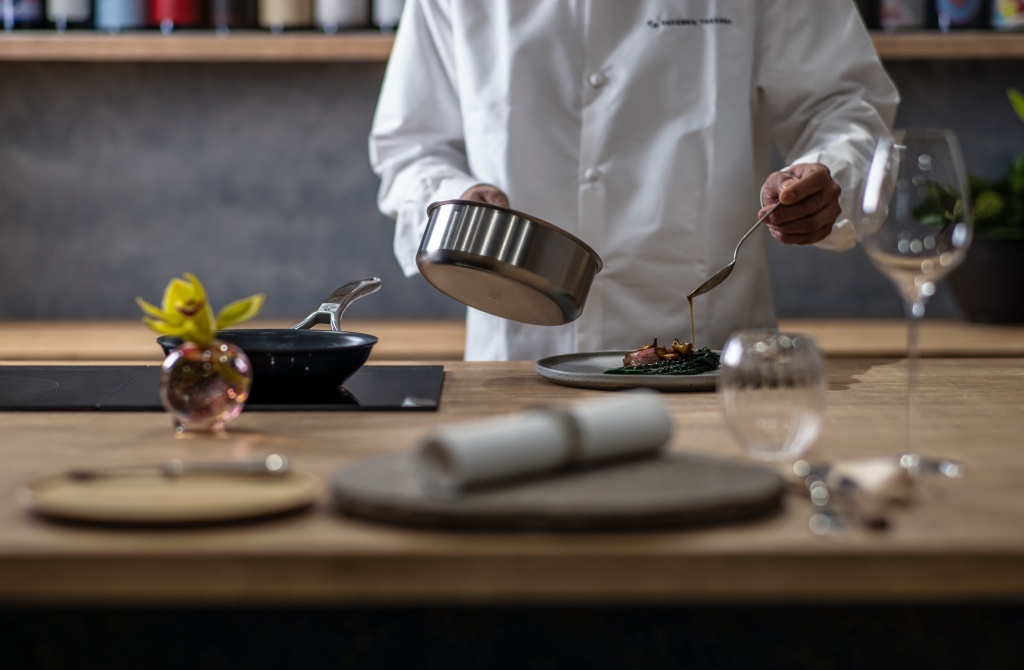 The counter, where chef and guests connect, represents a new and distinctive charm of the restaurant. Enjoy a setting designed to engage and immerse.